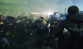 06 Feb, 2026 18:49Miles marchan y chocan con la policía en Juegos de Invierno de Milán