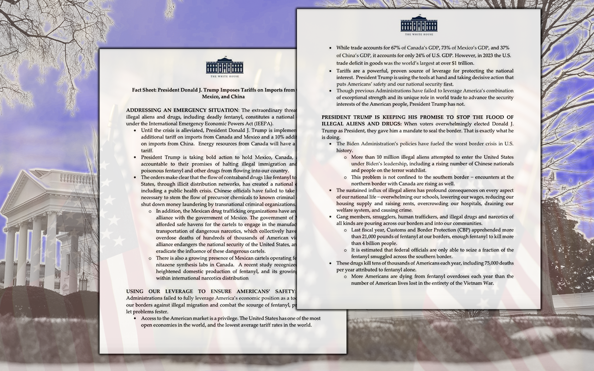 El presidente Trump está tomando medidas audaces para responsabilizar a México, Canadá y China de sus promesas de detener la inmigración ilegal y detener el flujo de fentanilo venenoso y otras drogas hacia nuestro país.