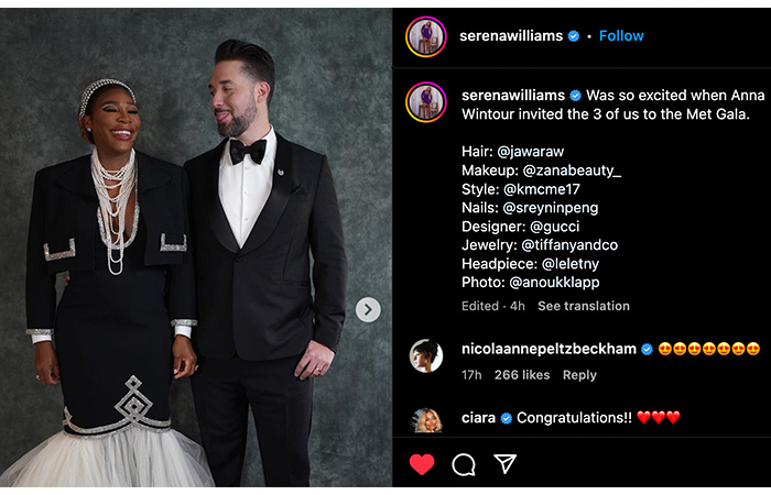 “Estaba tan emocionada cuando Anna Wintour nos invitó a los tres a la Met Gala“, escribió Williams en una publicación en Instagram en la que compartió fotografías previas a la gala.