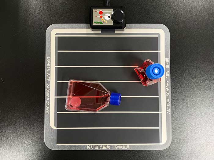 Dispuestos en placas de cultivo y frascos, dos parches fueron mostrados por el profesor en una visita de la prensa internacional en Japón a su laboratorio de Osaka, con motivo de la Exposición Universal que la ciudad acogerá en 2025 y donde se exhibirá un “corazón iPS”.