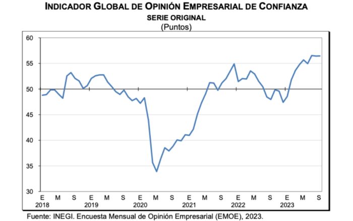 La confianza de los empresarios mexicanos aumentó 8.5% durante septiembre respecto al mismo mes de 2022, impulsado por caídas en el comercio y en la construcción, reveló el Instituto Nacional de Estadística y Geografía (Inegi).