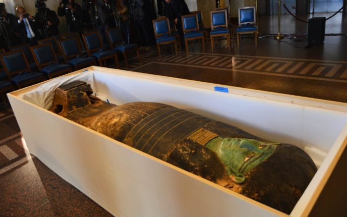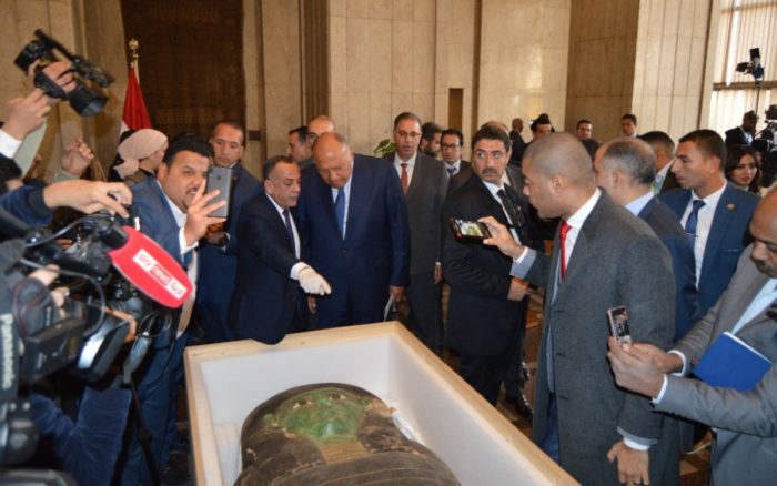 “Se trata de un momento único e importante (…) recuperamos el sarcófago verde tras años de trabajo con las autoridades estadounidenses”, celebró el ministro de Exteriores egipcio, Sameh Shokri en una rueda de prensa tras una ceremonia de entrega de las piezas.