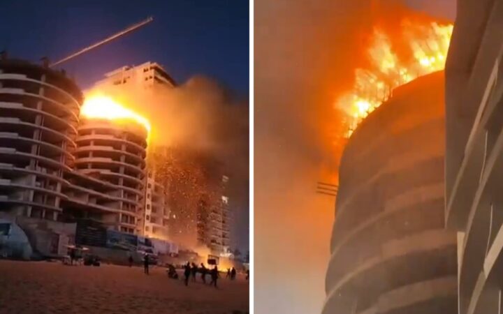 La noche del martes en Playa de Brujas, Mazatlán, se registró un fuerte incendió que se originó presumiblemente en el piso 11 de un conjunto de condominios aún en proceso de construcción, por lo que diversos cuerpos de bomberos e integrantes de Protección Civil en el estado asistieron para evacuar a los vecinos de la zona y extinguir el fuego.