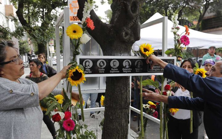 El memorial estaba dedicado a estas cinco personas, asesinadas el 31 de julio del 2015 en un departamento de la calle Luz Saviñón 1909, en la colonia Narvarte, alcaldía Benito Juárez, en la Ciudad de México.