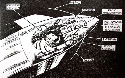 En una cabina sellada y separada del resto viajaba la perra Laika, cuyo nombre original era ‘Kudryavka’, y pesaba unos 6 kilos. La cabina presurizada del Sputnik 2 le permitía estar acostada o de pie y estaba acolchada. Un sistema regenerador de aire le proveía de oxígeno; la comida y el agua se encontraba en forma de gelatina.