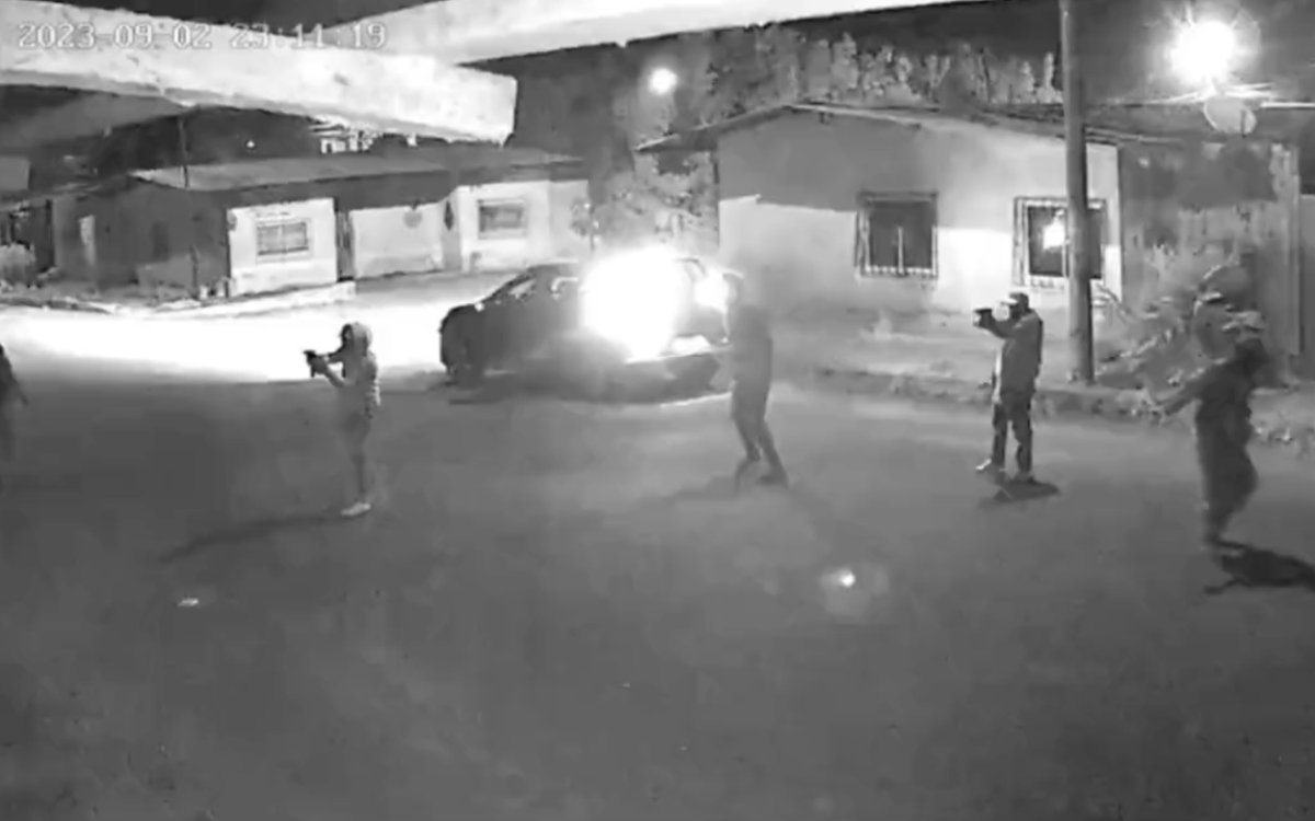 En las imágenes se puede observar como seis presuntos sicarios atacan un inmueble con armas de alto poder, así como el momento en el que emprenden la huida.
