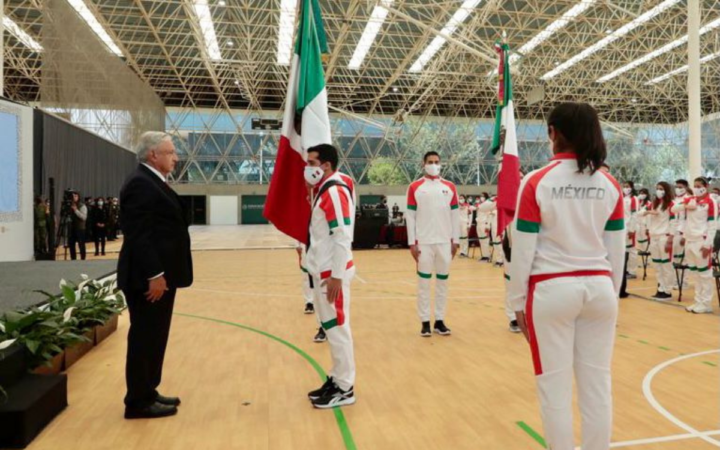 Este lunes, el presidente abanderó a las delegación mexicana que asistirá a la justa deportiva que se llevará a cabo del 23 de julio al 8 de agosto de 2021.