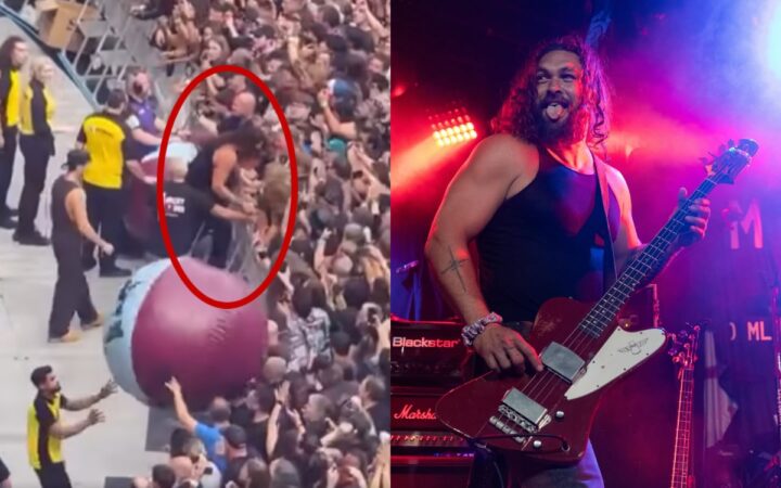 En redes sociales se difundieron videos del momento en el que el actor -que también dio vida al personaje de Aquaman en el universo de DC Comic-s saltó las vayas que separa al público del escenario para dirigirse al espacio donde se formaba el mosh-pit, una zona donde los asistentes bailan de forma enérgica.