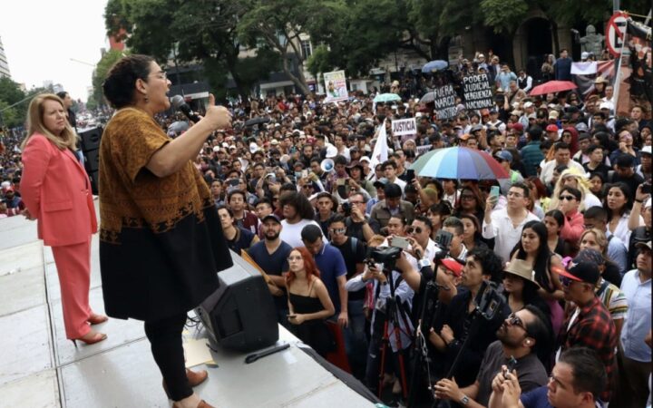 También lanzaron consignas como: “¡Reforma judicial, por voto popular!”