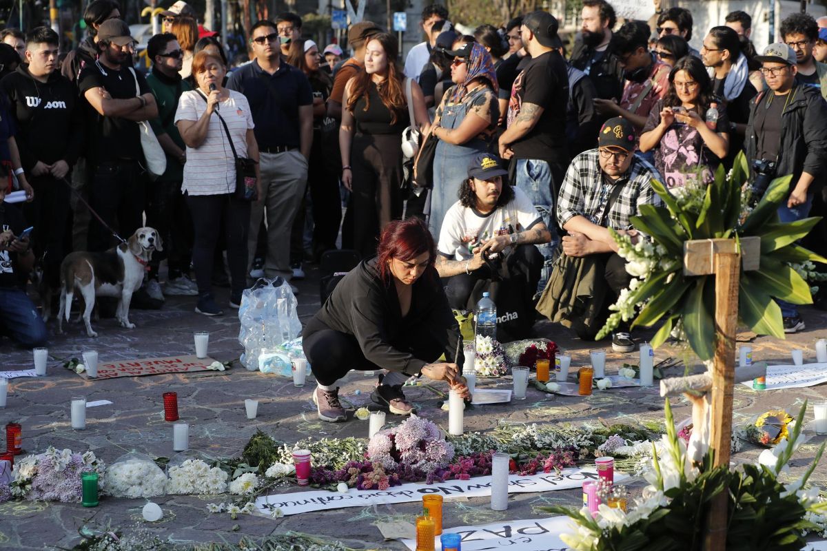 En memoria de las víctimas, los manifestantes, en su mayoría periodistas, colocaron veladoras y flores en la entrada del Parque Bicentenario, donde llevarán a cabo una velada en protesta pacífica.