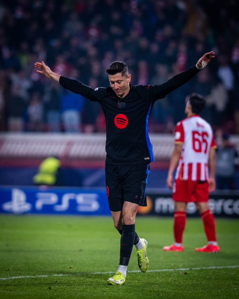 Barcelona se impuso a domicilio 2-5 a Estrella Roja de Belgrado, gracias a un doblete del ariete polaco Robert Lewandowski, quien llegó a 99 goles en el torneo continental.