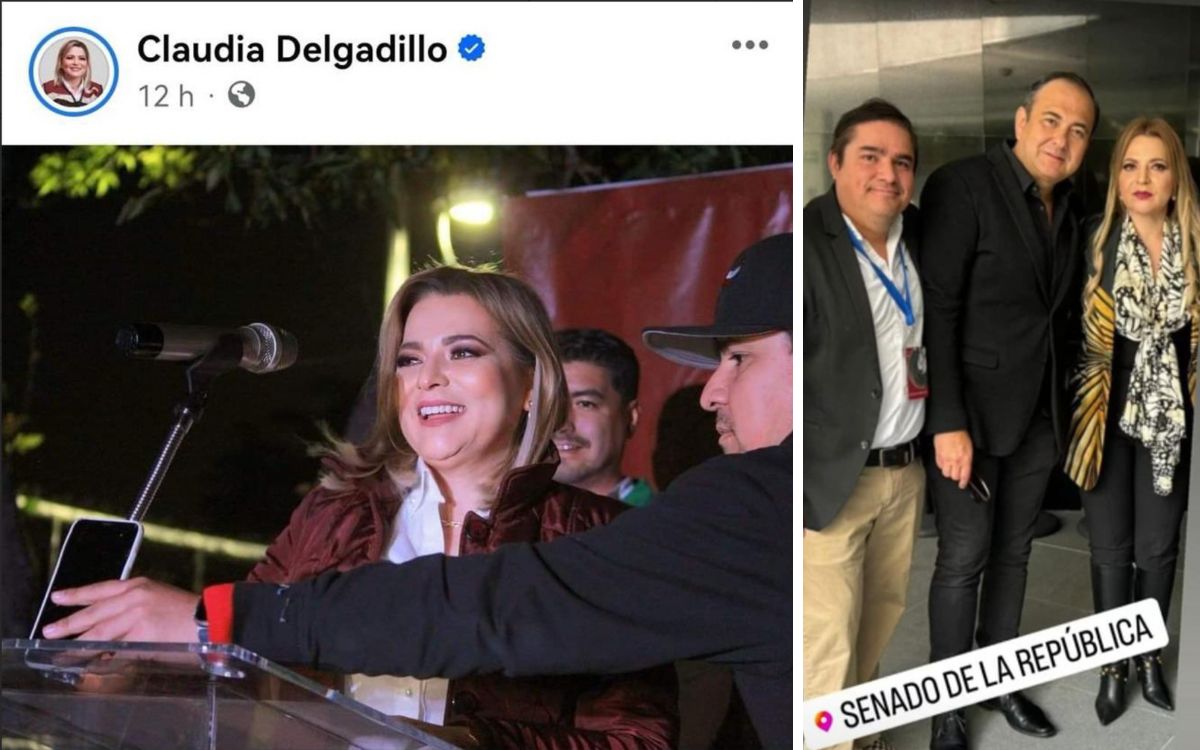 Javier Castañeda en un evento político de Claudia Delgadillo y en el Senado a un lado de ella y Roberto. Imágenes: Capturas de Pantalla