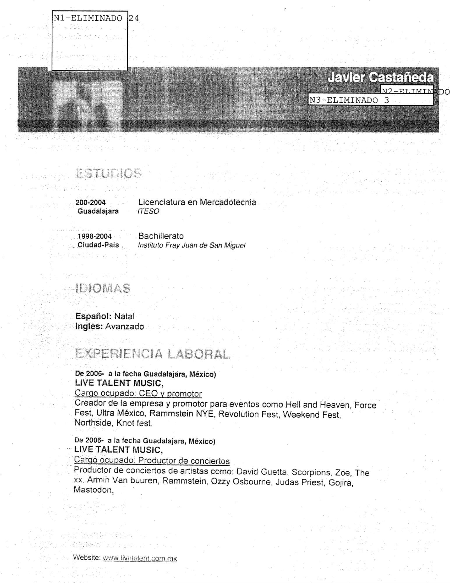 El 16 de noviembre de 2021, Castañeda fue dado de alta en la administración pública de Guadalajara, presentando un curriculum vitae en el que su única experiencia era encabezar la cuestionada y para ese entonces extinta Live Talent.