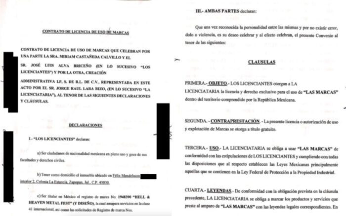 El representante legal de la empresa durante las contrataciones, Lara Rizo, también firmó en julio del 2022 el contrato para que Creación Administrativa LP tuviera la licencia de las diferentes marcas del H&H, el festival encabezado por Javier Castañeda.
