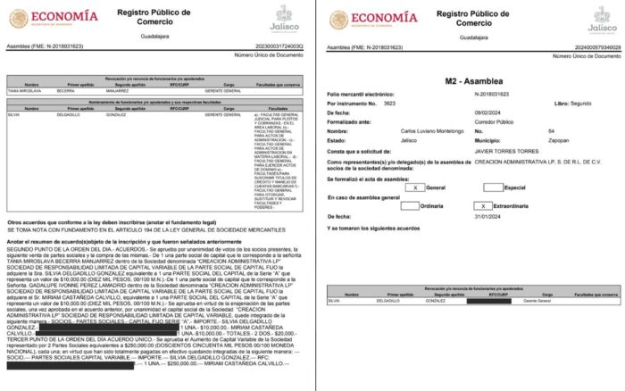 En enero de ese mismo año, Silvia Delgadillo González fue nombrada Gerente General de Creación Administrativa LP, quedando como accionista en conjunto con Miriam Castañeda Calvillo, hermana de Javier.