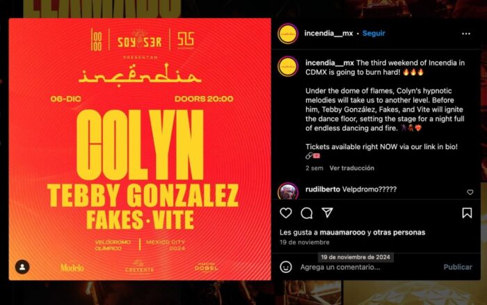 El 19 de noviembre, la página oficial del evento de música electrónica Incendia anunció que llevará a cabo su tercer fin de semana de conciertos a partir de este viernes el 6 de diciembre en el Velódromo Olímpico, chocando así con el concierto de Tokio Hotel.