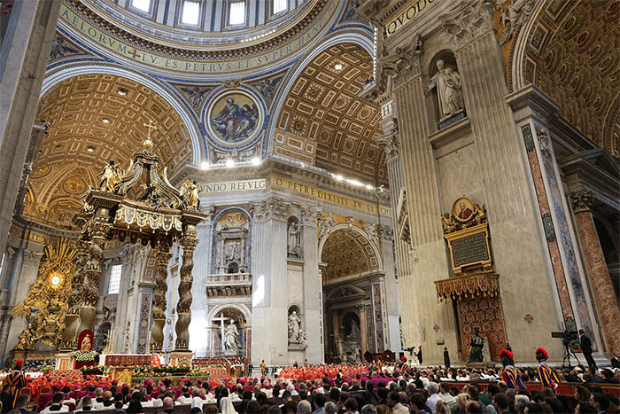La procesión de los cardenales a la Capilla Sixtina, entonando las letanías de los santos y santas y el canto ‘Veni Creator’ de invocación del Espíritu Santo, fue retransmitida en las pantallas gigantes instaladas para la ocasión en la plaza vaticana.