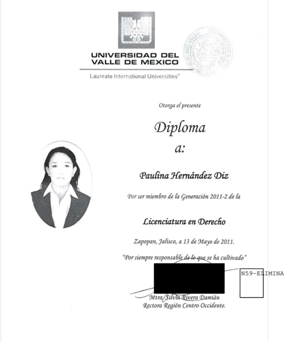 Si bien en el Currículum Vitae del Directorio de la CDHCM se destaca que la aspirante a la CNDH tiene una “Especialidad en el ejercicio de la docencia CISE.UNAM” y varios Diplomados, al hacer una consulta en el Registro Nacional de Profesionistas de la Secretaría de Educación Pública (SEP), éste no arroja ningún resultado.