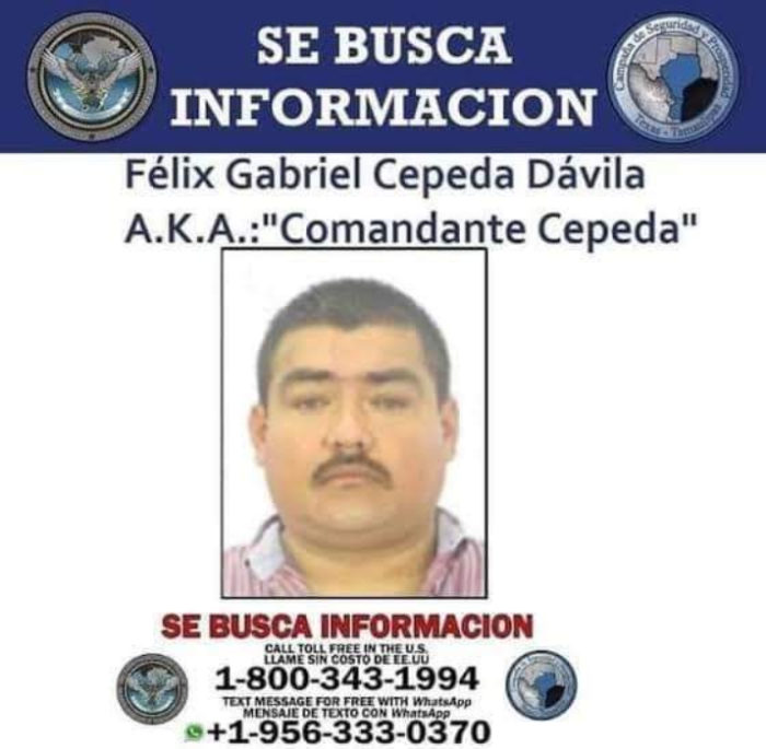 El presunto mando detenido sería Félix Gabriel Cepeda Ávila, “El Comandante Cepeda”, mismo que era buscado por autoridades de Tamaulipas y Texas por distintos hechos delictivos.