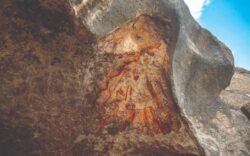 La mano formaba parte de un panel con pintura rupestre (de 5 metros de ancho, 3 metros de altura y 1.5 metros de profundidad), donde hay más de 150 figuras pintadas en las paredes, en colores rojo, amarillo, blanco, negro y naranja. Muchas de las figuras están superpuestas, lo que sugiere que fueron realizadas en diferentes momentos a lo largo de generaciones, entre 5,000 y 500 años antes del presente.