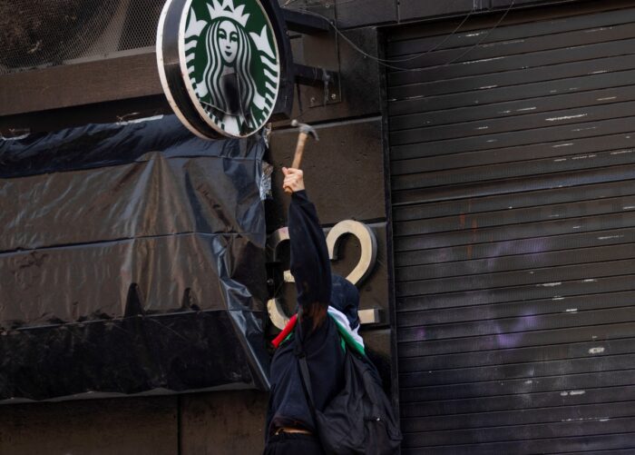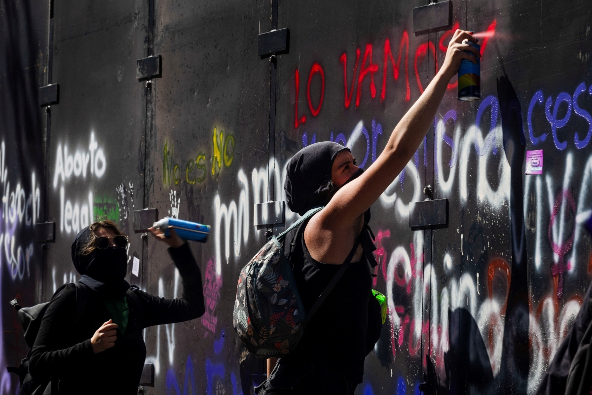 En fotografías de autoría de Reuters se observa que durante la marcha del 8M se realizaron pintas y hubo vandalismo en la CDMX.