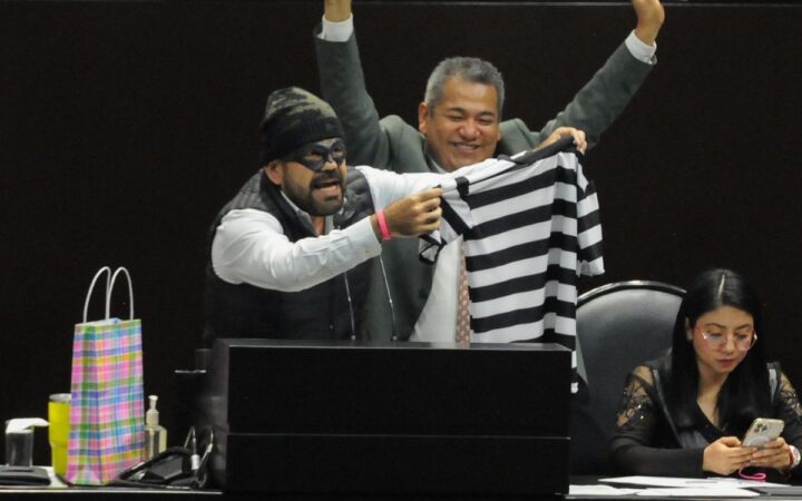 El diputado del Partido de la Revolución Democrática (PRD), Francisco Javier Huacus Esquivel, obsequió un antifaz de ladrón a los integrantes de la bancada de Morena y a sus aliados en la cámara baja, durante la discusión del martes de reservas al Presupuesto de Egresos de la Federación (PEF).