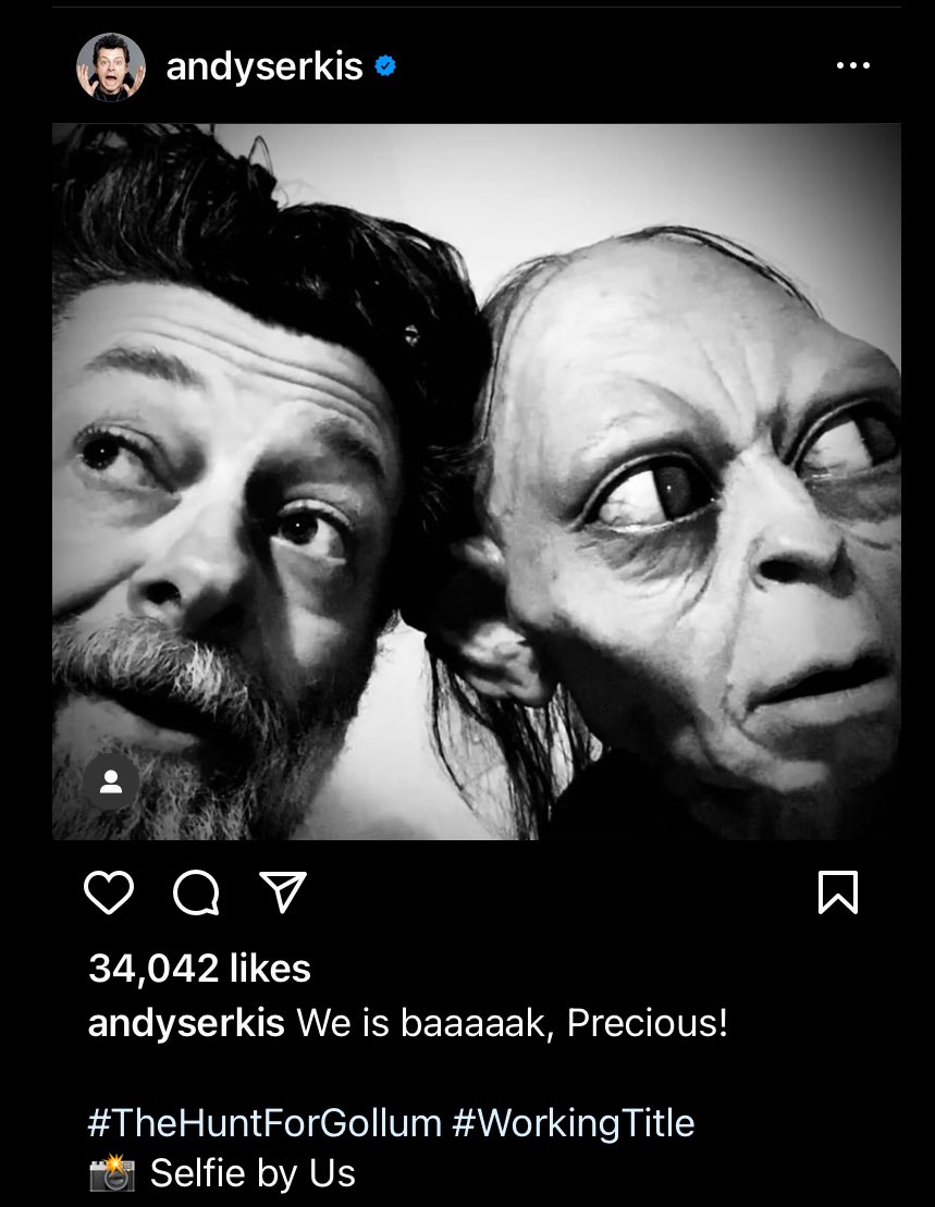 Andy Serkis publicó una fotografía en Instagram con Gollum y comentó “We is baaaaak, Precious!” (“Estamos de regreso, precioso”).