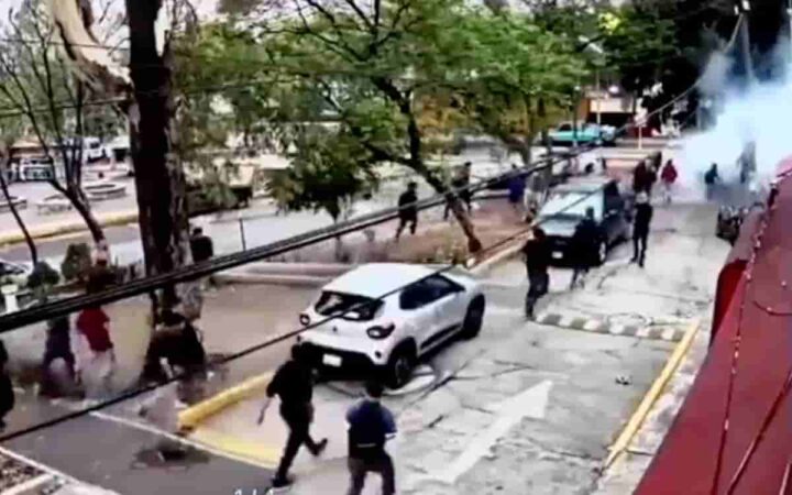 El gobierno de Naucalpan informó que la Dirección General de Seguridad Ciudadana y Movilidad Segura recibió el reporte de alteración del orden en las inmediaciones del CCH, con la participación de personas que fueron identificadas como “porros” por los propios estudiantes.