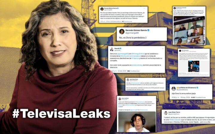 La excandidata a ministra de la Suprema Corte de Justicia de la Nación (SCJN) y ex trabajadora del área de Televisa que realizaba campañas de desinformación, Dora Alicia Martínez Valero, presentó ante el Instituto Nacional Electoral (INE) una denuncia por violencia política en razón de género en contra de Aristegui Noticias, de Germán Gómez, alertador de la investigación periodística Televisa Leaks, y “en contra de quien resulte responsable” por las alusiones a su persona en decenas publicaciones de redes sociales.