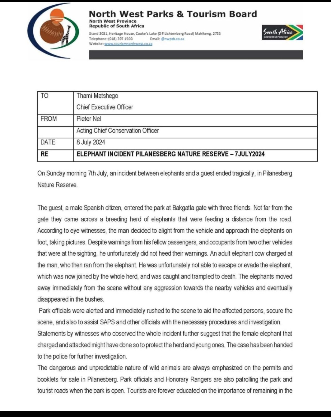 🐘 A tourist was killed on Sunday afternoon in #Pilanesberg National Park after an #elephant attacked him. The individual, said to be a Spanish man, stepped out of his car to take a picture, sources said. 🐘 #TheCitizenNews