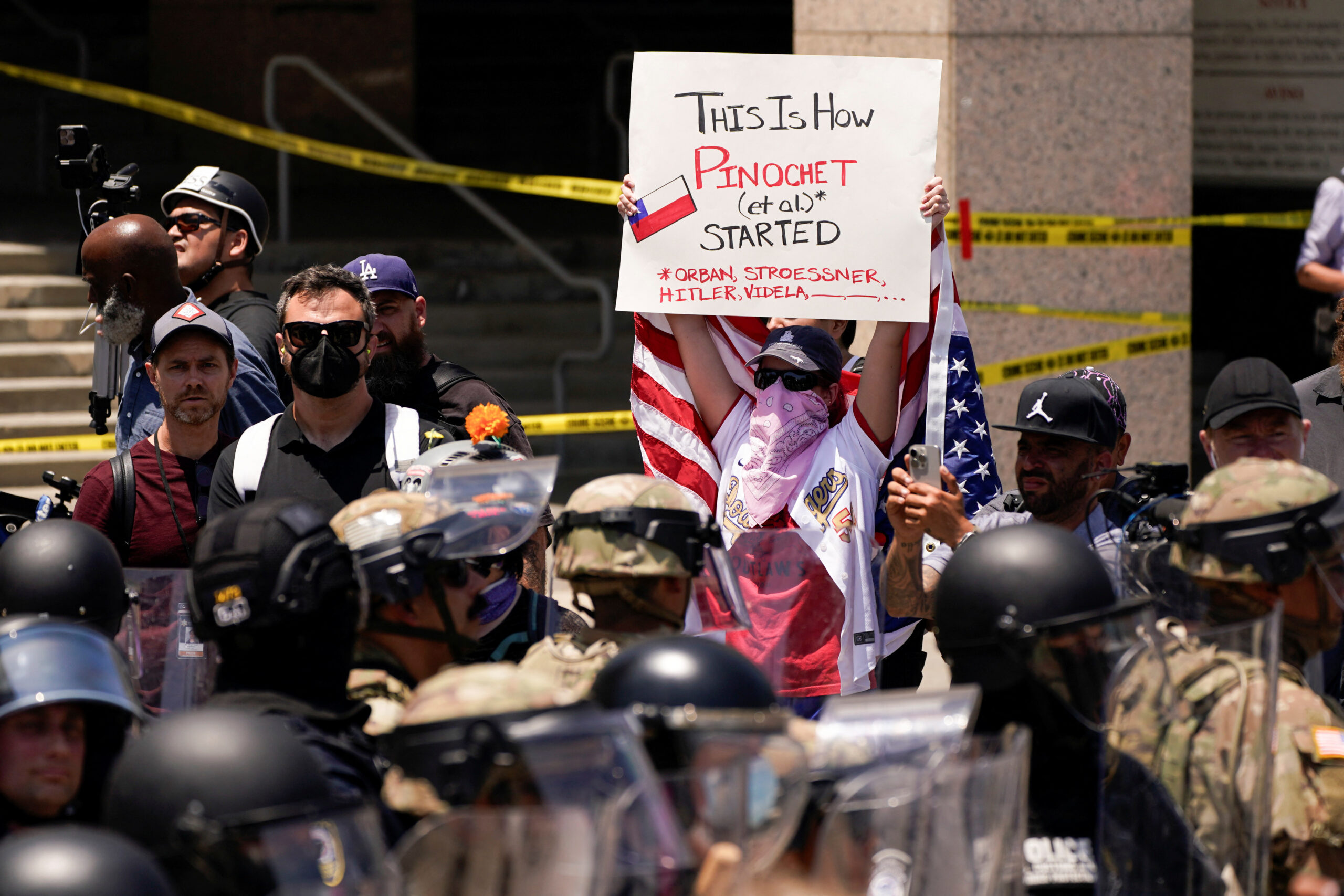 Los Ángeles protesta desde el pasado viernes en unas multitudinarias manifestaciones por las redadas contra migrantes indocumentados ordenadas por parte del presidente de Estados Unidos, Donald Trump, y su decisión de desplegar inicialmente a 2.000 soldados de la Guardia Nacional de California.