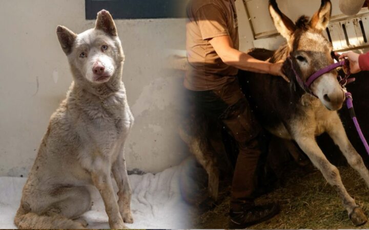 Algunos animales llevan las cicatrices de la terrible experiencia, como un Husky con quemaduras graves, el pelaje chamuscado y las patas quemadas.