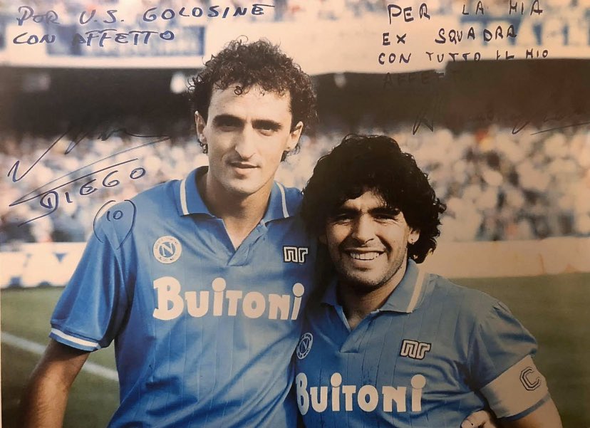 En un día bien azzurro, esta bellísima imagen de un Diego feliz como un nene, chocando palmas y alegría con Andrea Carnevale, compinche en aquel equipo. La foto es al final del 1 a 1 con Fiorentina del 10 de Mayo de 1987. Por fin…¡¡¡NAPOLI CAMPIONE D´ITALIA!!! #DiegoEterno pic.twitter.com/rkI7BXEN35