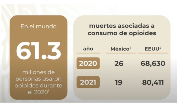 López-Gatell reiteró que se trata de una epidemia y sostuvo que el fentanilo “no se produce en México”, sino que se crea “a partir de precursores que no se fabrican en” territorio mexicano.
