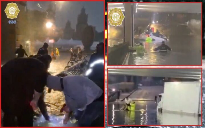 Los alrededores del Zócalo de la Ciudad de México se vieron inundados tras las fuertes lluvias; el nivel del agua incluso llegó a entrar a la Catedral Metropolitana. La Secretaría de Seguridad Ciudadana de la Ciudad de México (SSC) compartió videos de elementos de la Policía Auxiliar realizando destape de coladeras y socorriendo a ciudadanos.