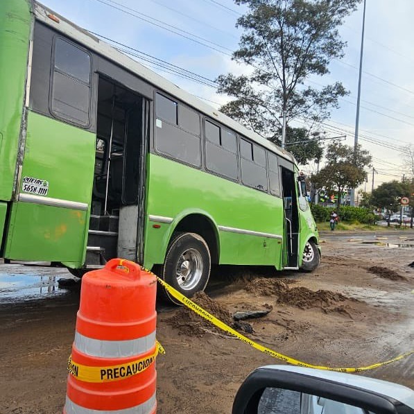 Cae camión de pasajeros en socavón formado en Coyoacán
