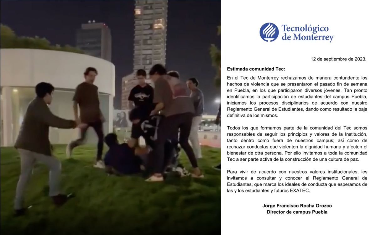 De acuerdo con un comunicado emitido por la institución, el Tec de Monterrey Puebla identificó a estudiantes de la comunidad estudiantil entre los agresores y, en consonancia con su Reglamento General de Estudiantes, procedió a expulsarlos de manera definitiva.