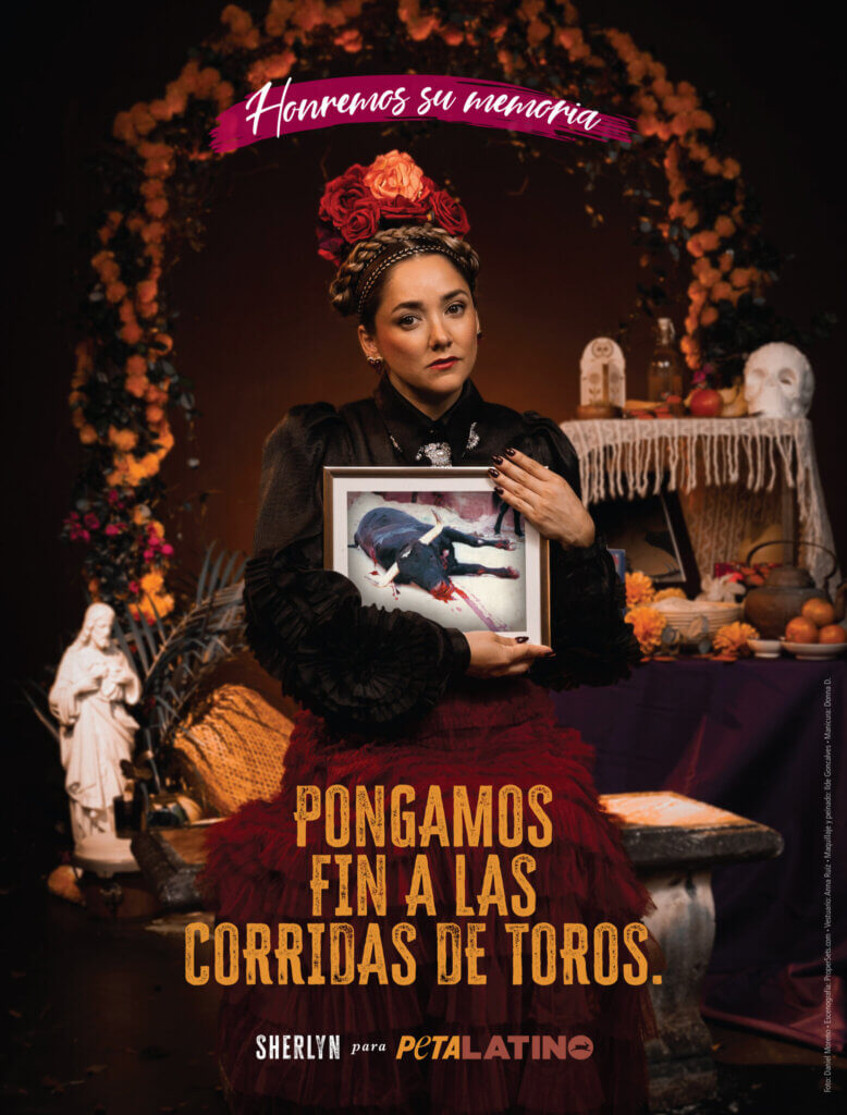 Mientras que, al evocar el Día de Muertos, Sherlyn González pide a las personas que reflexionen sobre los horrores de la tauromaquia y las vidas de sus víctimas.