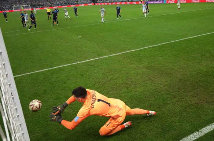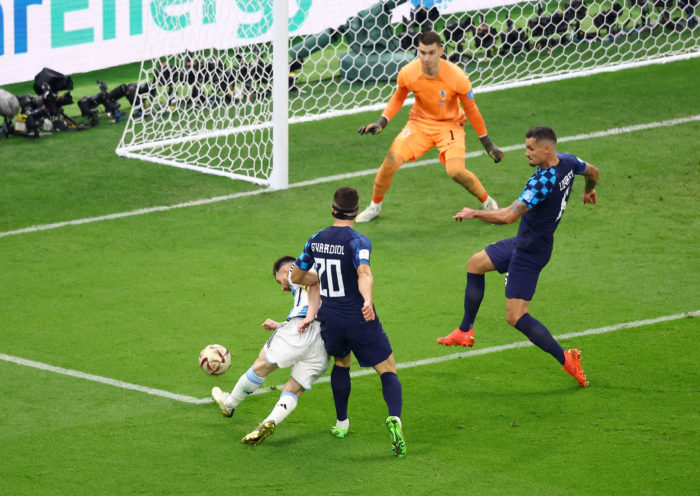 Fue hasta el minuto 25, cuando Argentina registró su primer disparo al marco rival por conducto de Enzo Fernández, quien sacó un remate de derecha, pegado al poste izquierdo, pero el arquero Dominik Livakovic, uno de los mejores del Mundial, recostó y acabó con el peligro.