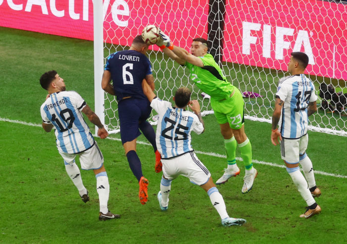 La desesperación croata se tradujo en servicios al área argentina, uno de ellos al 62′ que dio lugar al titubeo de Emiliano Martínez, así como el remate malogrado con la cabeza de Dejan Lovren.