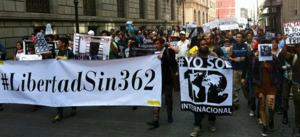 #YoSoy132 marchó de Bellas Artes a la Asamblea Legislativa del Distrito Federal, como parte de la campaña contra el artículo 362 del Código Penal del DF. Los inconformes buscan que se libere a las 14 personas que continúan presas desde el 1 de diciembre por los disturbios durante la toma de protesta del presidente Peña Nieto. (Foto: @Luiggifunk)