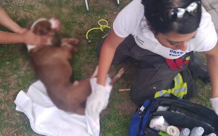 Según el Servicio de Ambulancia y Rescate Especializado Para Animales (URSVA) de Puebla, el can cayó desde el último piso del Edificio 1 del Andador San Pedro, en el fraccionamiento Mui Hogar El Rosario, luego de ser dejado fuera de su casa sin agua ni comida.
