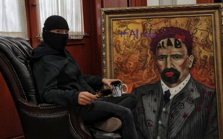 Las instalaciones de la CNDH fueron tomadas por colectivos feministas en 2020; este viernes se encontraban sólo 3 personas encapuchadas dentro del inmueble.