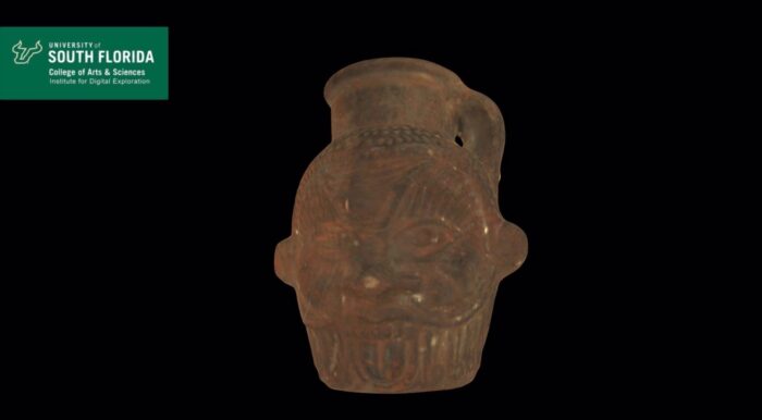 El profesor de la Universidad del Sur de Florida Davide Tanasi examinó una de las pocas tazas Bes egipcias que quedan en el mundo.