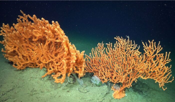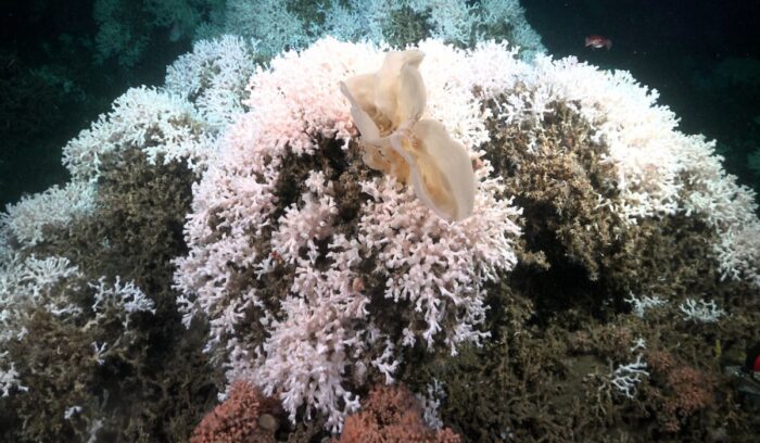 Pero una escena aún más inesperada apareció en otro punto de la expedición: gusanos Lamellibrachia victori, que habitan en manantiales fríos ricos en metano, creciendo junto a corales de aguas profundas. Dos comunidades que sobreviven gracias a fuentes de energía totalmente distintas —una alimentada por microalimentos de la columna de agua, la otra por compuestos químicos del lecho marino— compartiendo, sin embargo, un mismo y sorprendente paisaje submarino.