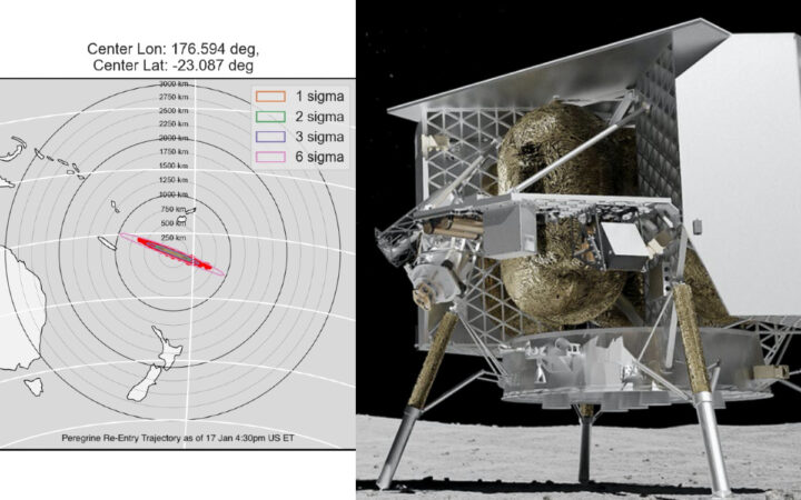 La empresa Astrobotic colocó la nave espacial Peregrine para un reingreso seguro y controlado a la Tierra sobre un área remota del Pacífico Sur.