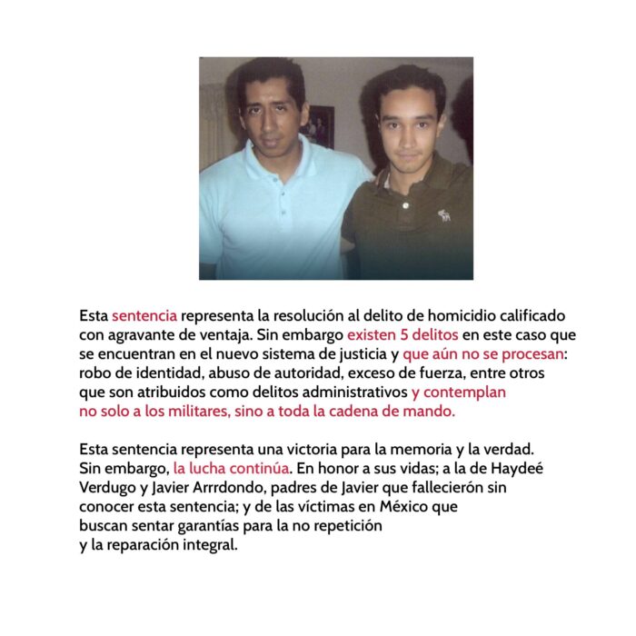 “Esta sentencia representa un paso hacia la verdad, pero aún quedan muchas interrogantes en torno al caso: ¿qué pasa con la cadena de mando?, ¿de quién tomaron los soldados la orden ese día?, ¿es realmente justicia encarcelar a quienes accionaron las armas y que sigan libres quienes dan las órdenes?”, estableció Luis Echeverría, integrante del colectivo.
