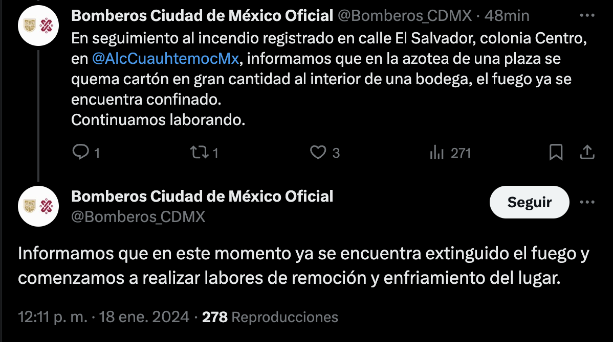 Minutos después del mediodía de este 18 de enero, Bomberos de la CDMX confirmaron que el fuego ya había sido controlado.
