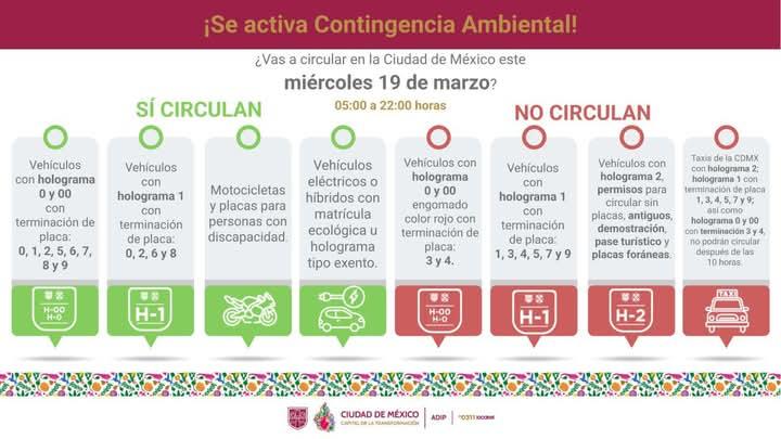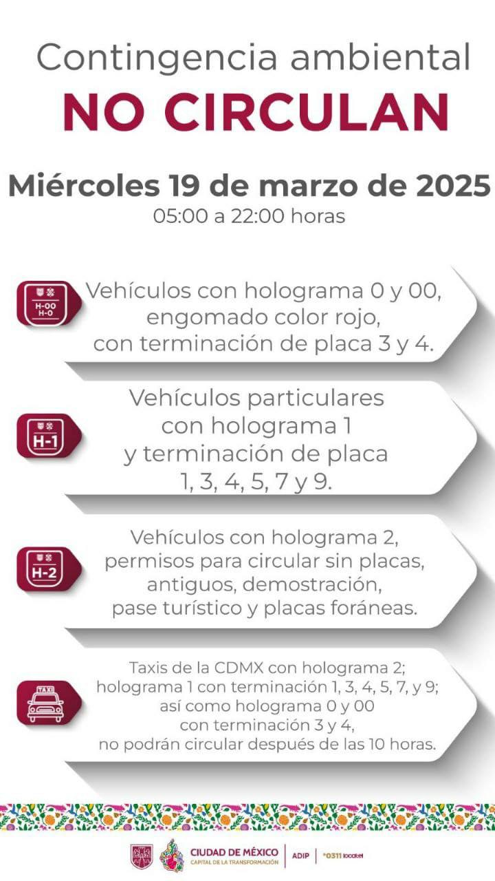 Este miércoles 19 de marzo, deberán suspender su circulación, en horario de las 5:00 a las 22:00 horas: