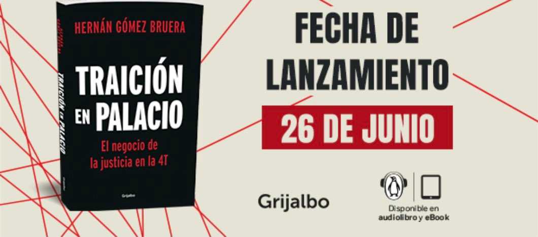 Editorial Grijalbo tiene lista la distribución de “Traición en Palacio”, el nuevo libro de Hernán Gómez Bruera.